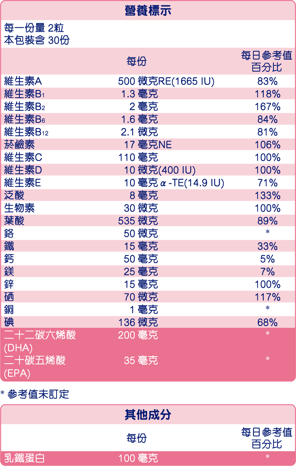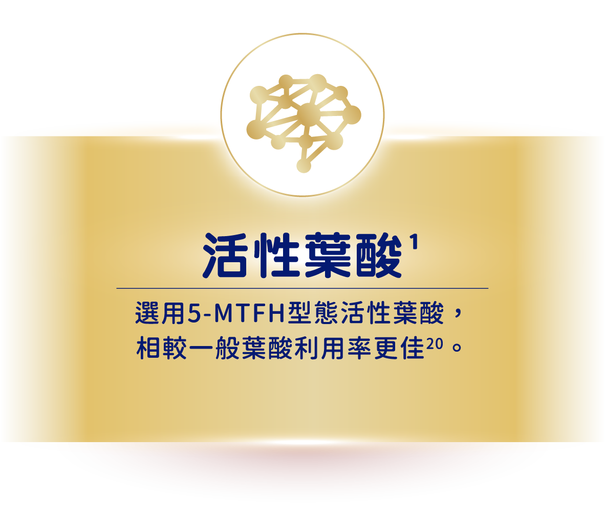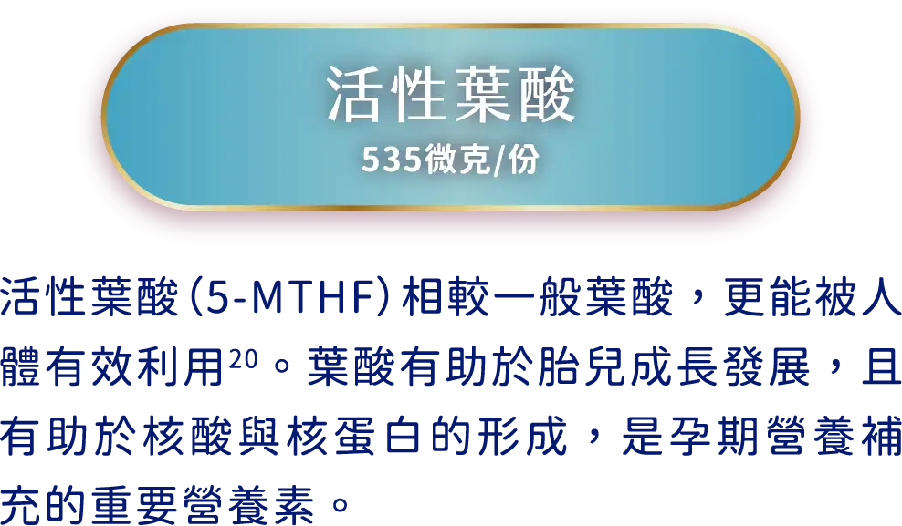 活性葉酸每份達535微克,有助胎兒成長、核酸與核蛋白的發展