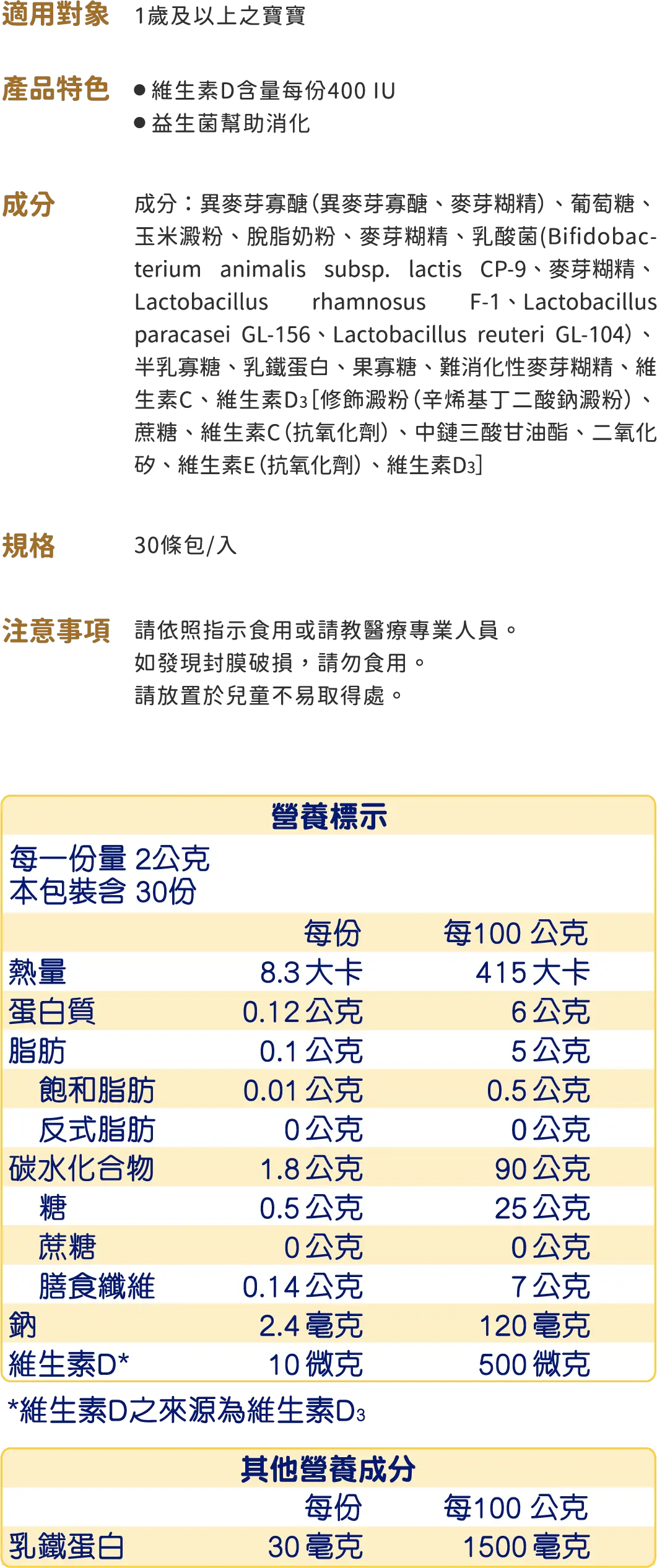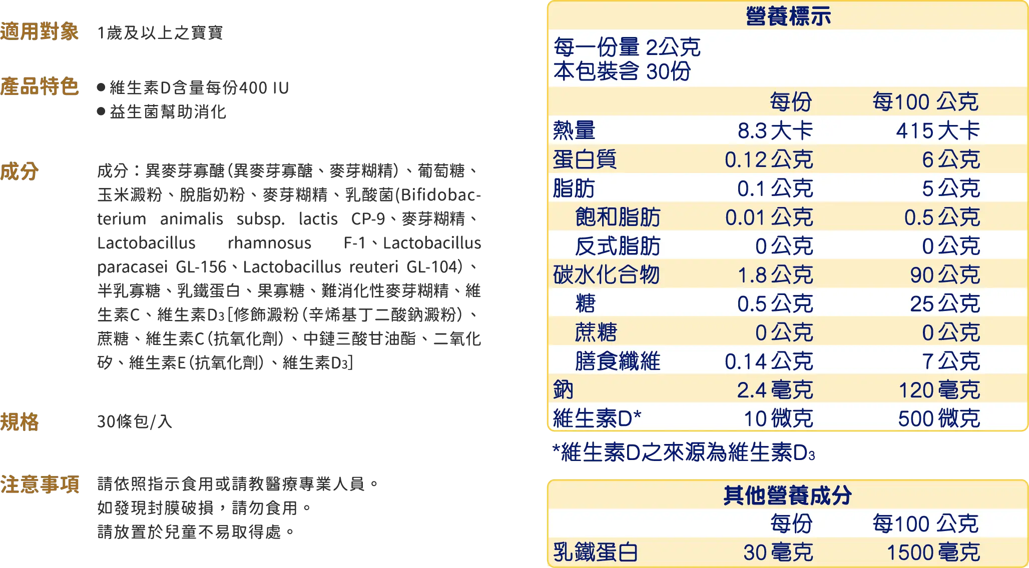 乳鐵蛋白每份達100微克,是健康維持的關鍵營養補給成分